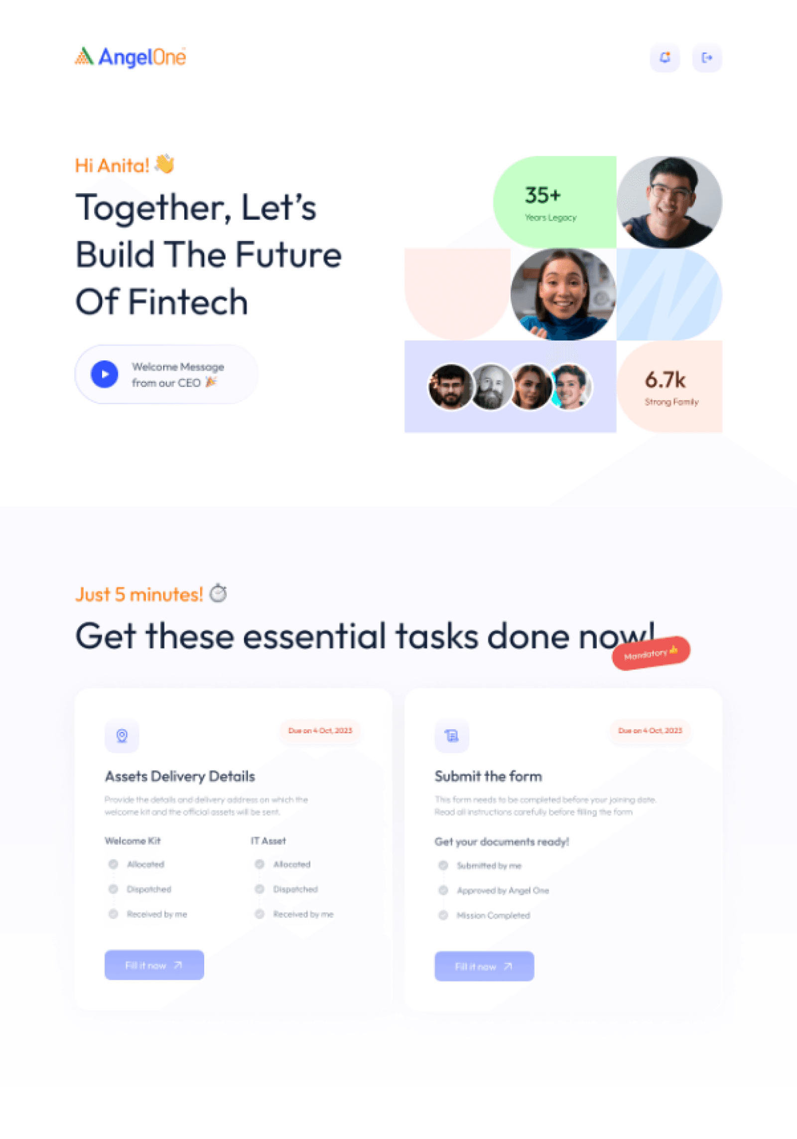 AngelOne's onboarding portal was redesigned to reduce high drop-off rates and deliver a seamless, millennial-friendly experience.